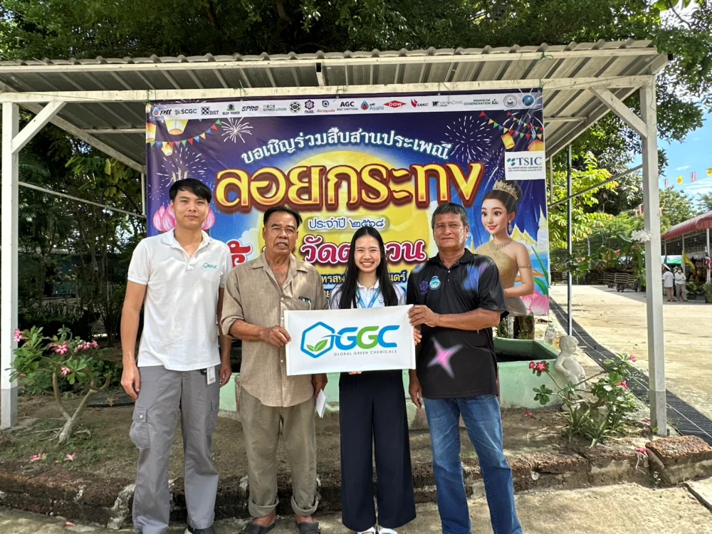 บริษัท โกลบอลกรีนเคมิคอล จำกัด (มหาชน) หรือ GGC ร่วมสืบสานประเพณีลอยกระทง ประจำปี 2568 ของชุมชน ในพื้นที่จังหวัดระยอง โดยมอบงบประมาณสนับสนุนการจัดกิจกรรมประเพณีลอยกระทง พร้อมเข้าร่วมกิจกรรมฯ เพื่อสร้างความสัมพันธ์อันดีระหว่างบริษัทฯ และชุมชน ผ่านการสืบสานและอนุรักษ์ประเพณีดังกล่าวร่วมกัน