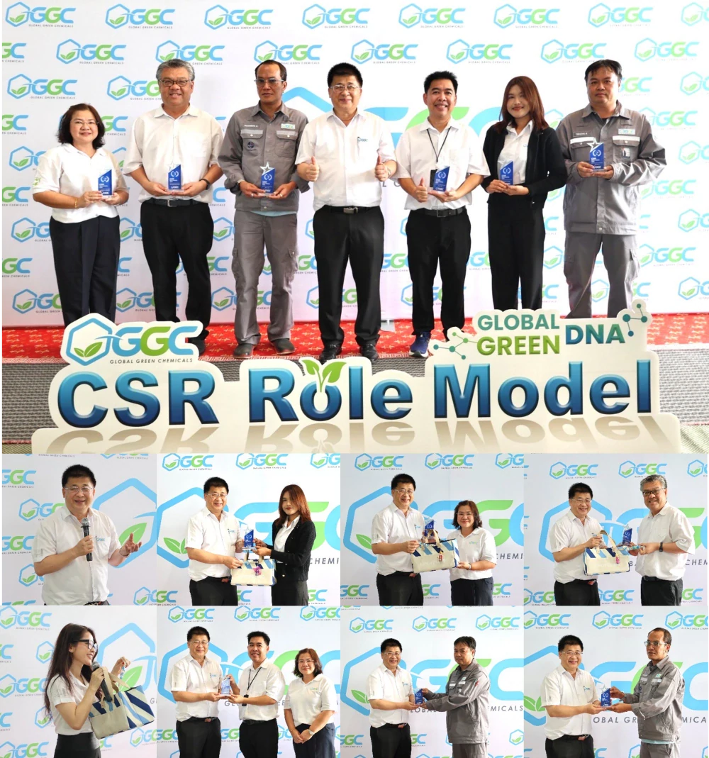 (18 กุมภาพันธ์ 2569) นายกฤษฎา ประเสริฐสุโข กรรมการผู้จัดการ บริษัท โกลบอลกรีนเคมิคอล จำกัด (มหาชน) หรือ GGC มอบโล่ GGC CSR Role Model ให้แก่ผู้บริหารและพนักงานที่ได้รับการคัดเลือกให้เป็น GGC CSR Role Model ปี 2569 ในงานวันทำบุญบริษัทฯ ประจำปี 2569 ณ โรงงานเมทิลเอสเทอร์ แห่งที่ 1 อ.เมืองระยอง จ.ระยอง
