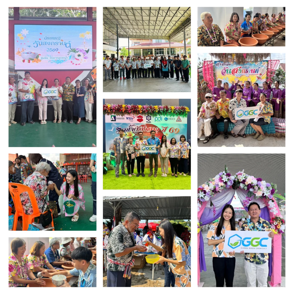 บริษัท โกลบอลกรีนเคมิคอล จำกัด (มหาชน) หรือ GGC ร่วมสืบสานประเพณีสงกรานต์และวันผู้สูงอายุ ประจำปี 2569 กับชุมชนรอบพื้นที่โรงงาน ได้แก่ เทศบาลนครมาบตาพุด เทศบาลเมืองบ้านฉาง เทศบาลตำบลบ้านฉาง จังหวัดระยอง และองค์การบริหารส่วนตำบลเขาซก จังหวัดชลบุรี ระหว่างวันที่ 5 – 19 เมษายน 2569 โดยในปีนี้ บริษัทฯ ได้นำพนักงาน จิตอาสาเข้าร่วมกิจกรรม พร้อมสนับสนุนงบประมาณในการจัดงานของ แต่ละชุมชน ร่วมอนุรักษ์ขนบธรรมเนียมประเพณีไทย และเสริมสร้างความสัมพันธ์อันดีระหว่างชุมชนและองค์กร เพื่อการเติบโตร่วมกันอย่างยั่งยืน