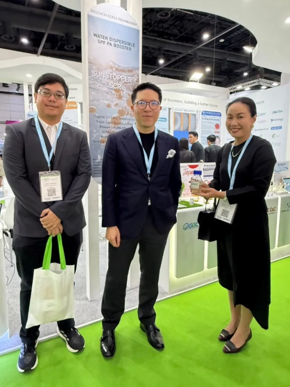 ภายในงาน บริษัทฯ ได้จัดแสดงผลิตภัณฑ์ C12-14 Alkyl Benzoate ที่เป็นการพัฒนาต่อยอดจากแฟตตี้แอลกอฮอล์ ของบริษัทฯ สู่ผลิตภัณฑ์มูลค่าสูงในตลาดเครื่องสำอาง โดยมีคุณสมบัติเด่นในด้าน Bio-based ingredient ความสามารถการละลาย UV filters และ Pigments ที่ดี รวมถึงการให้สัมผัสผิวที่นุ่มลื่นไม่มัน ซึ่งเหมาะกับกลุ่มผลิตภัณฑ์กันแดด และเครื่องสำอาง โดยได้รับความสนใจเป็นอย่างมากจากลูกค้าทั้งในและต่างประเทศ นอกจากนี้ บริษัทฯ ยังได้รับเกียรติจาก คุณรวิศ หาญอุตสาหะ ประธานกรรมการบริหาร บริษัท ศรีจันทร์สหโอสถ จำกัด เยี่ยมชมบูธ และร่วมหารือแลกเปลี่ยนโอกาสทางธุรกิจ ซึ่งจะช่วยเสริมสร้างศักยภาพศักยภาพการเติบโตของ GGC ในอุตสาหกรรมเครื่องสำอางและผลิตภัณฑ์ดูแลส่วนบุคคลต่อไปอย่างยั่งยืน
