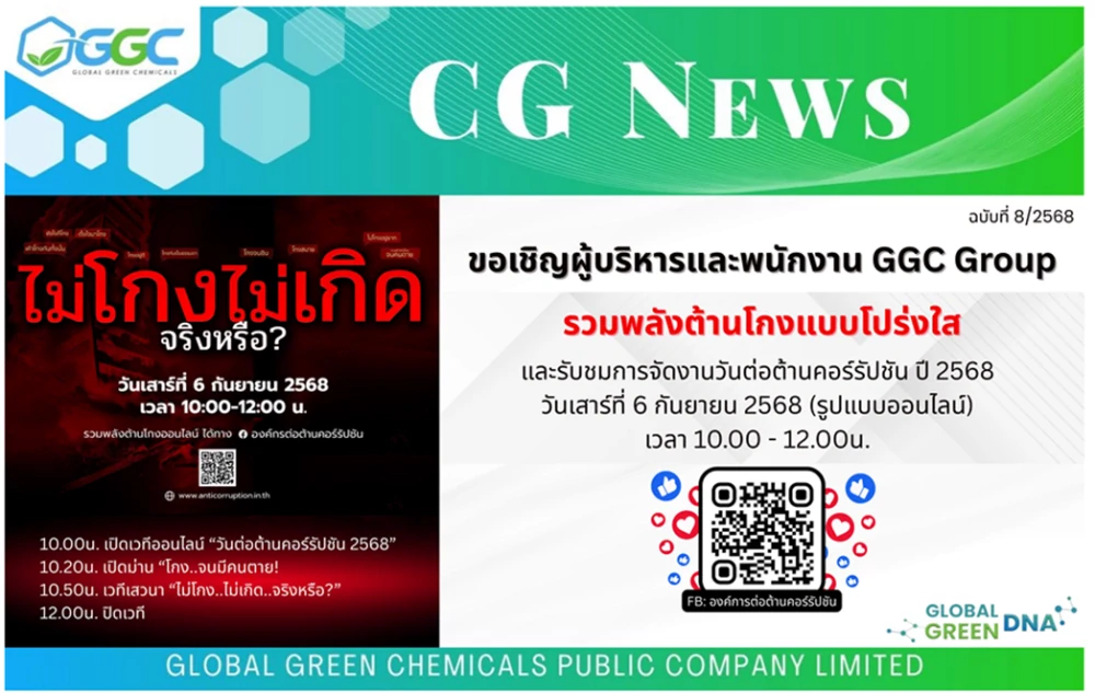 บริษัทฯ ได้มีการประกาศเจตนารมณ์ต่อต้านทุจริตคอร์รัปชั่นในโครงการแนวร่วมต่อต้านคอร์รัปชันของภาคเอกชนไทย โดยบริษัทฯ ได้เข้าร่วม โครงการฯ ตั้งแต่ปี 2560 และในปีนี้บริษัทฯ ได้ดำเนินกิจกรรมร่วมกับกลุ่มบริษัท GC ผ่านรูปแบบการประชุมออนไลน์ เพื่อเป็นการประกาศเจตนารมณ์ในการต่อต้านทุจริต รวมทั้งสร้างความตระหนักและความเข้มแข็งในการดำ เนินงานอย่างโปร่งใส และปราศจากการทุจริต