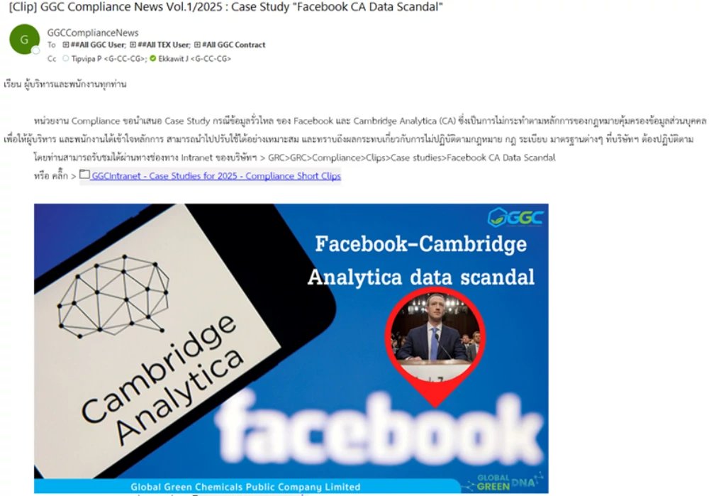 โครงการสื่อสารให้ความรู้พนักงานเกี่ยวกับการปฎิบัติตามกฎหมาย กฎ ระเบียบ และจรรยาบรรณธุรกิจ (GGC Short Clips)